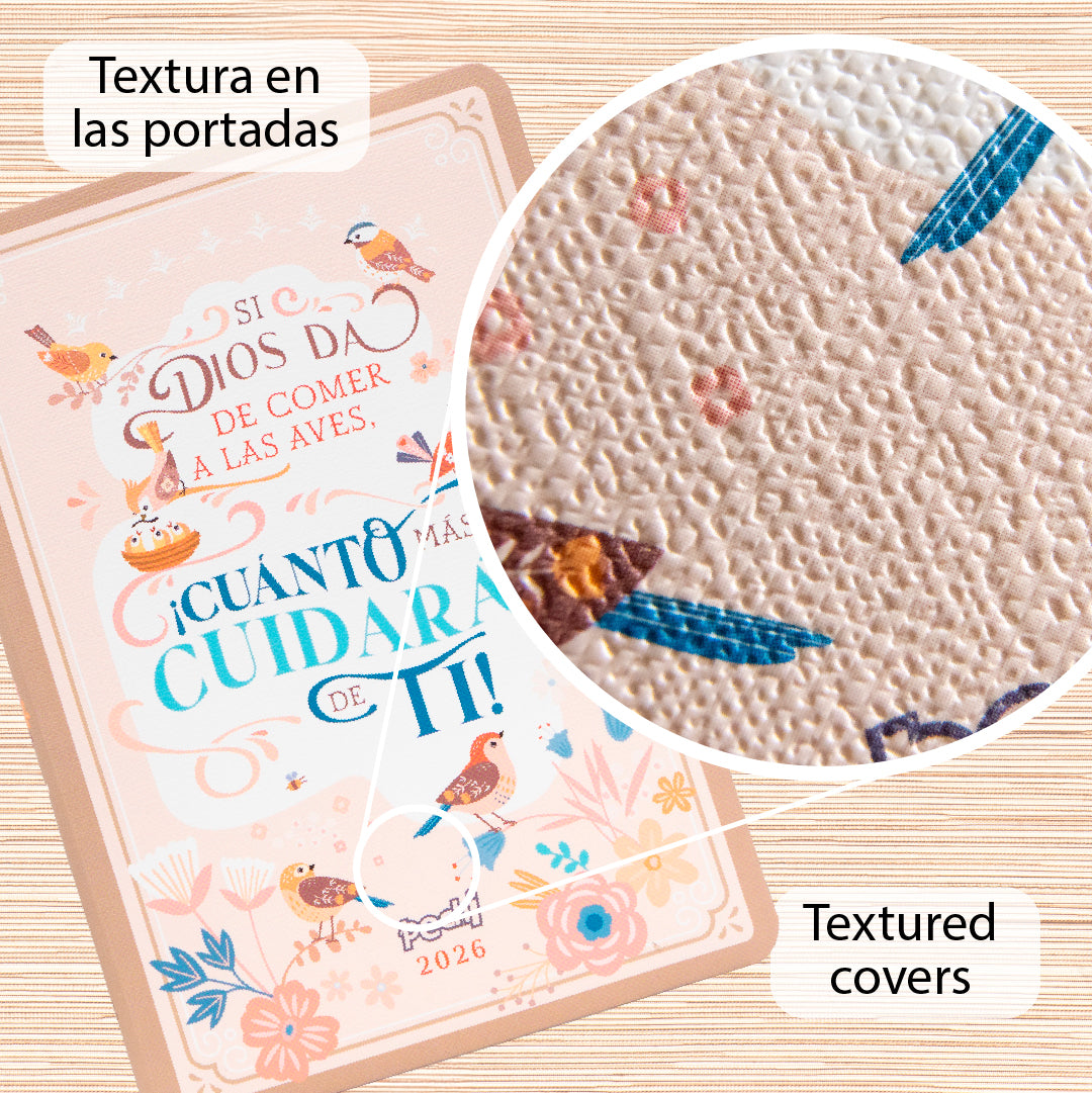 Un delicado diseño en tono rosado pastel, adornado con pajaritos, flores y un tierno nido 🕊️🌸. Esta portada nos recuerda una verdad profunda: