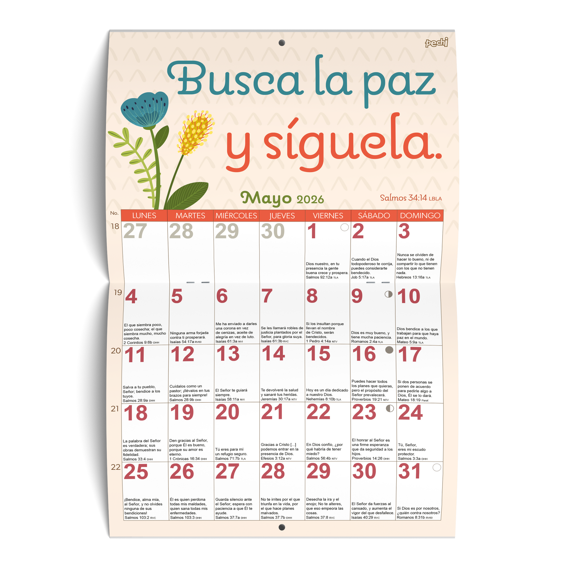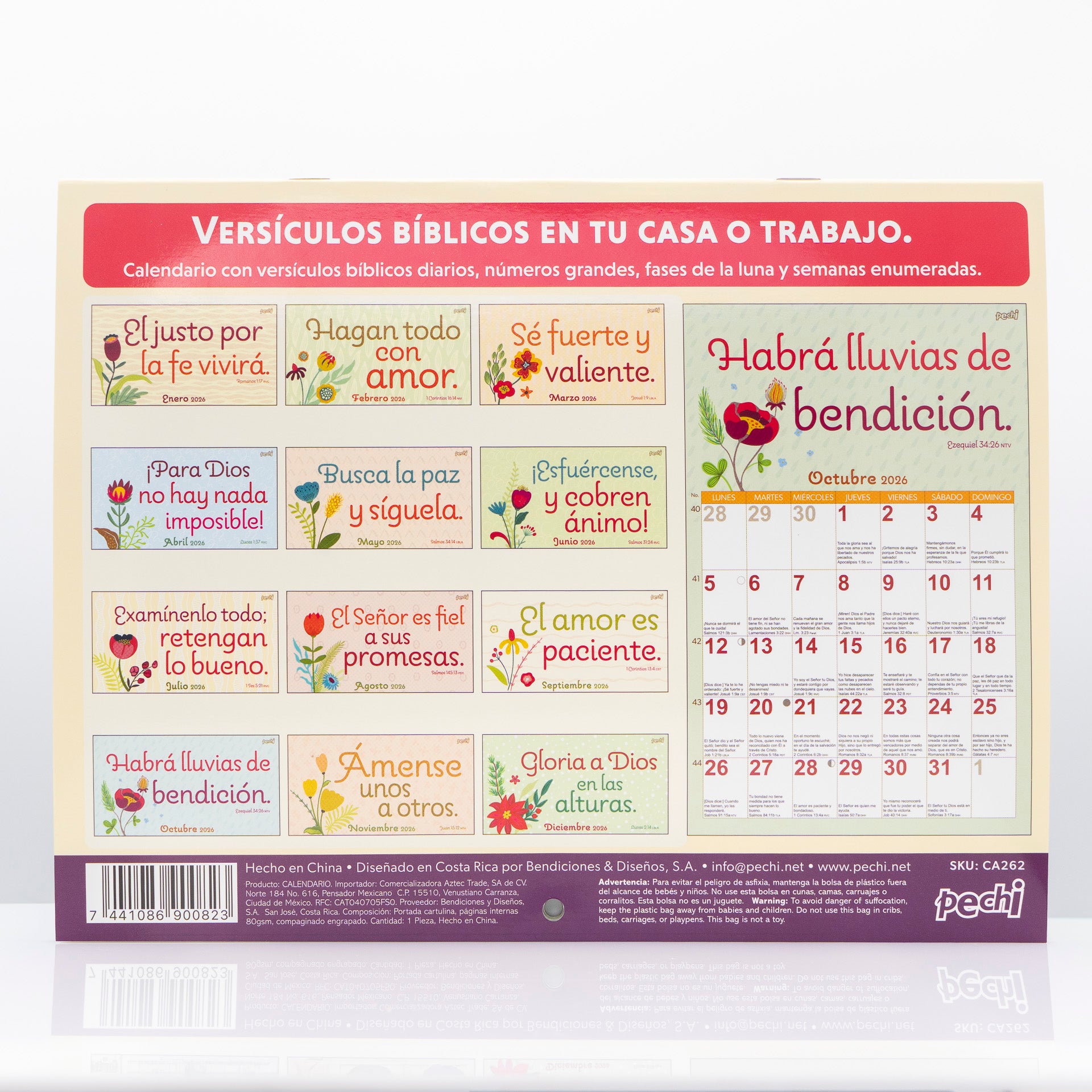 Nuestro Calendario Bendiciones está lleno de colores vibrantes, fondos florales y versĂculos diarios que traen ánimo, paz y guĂa a tu vida.