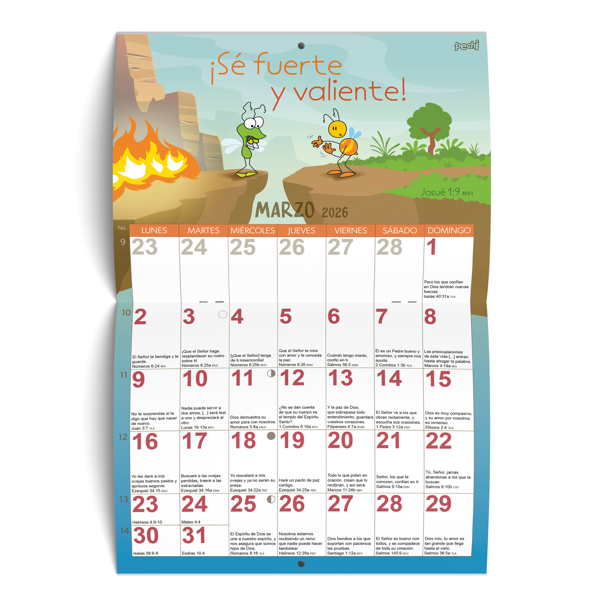 Nuestro Calendario Pechi para jóvenes combina colores vibrantes con mensajes que llenan el alma. Perfecto para decorar tu cuarto, el aula, tu área de trabajo o cualquier espacio donde quieras ver belleza, propósito y fe.