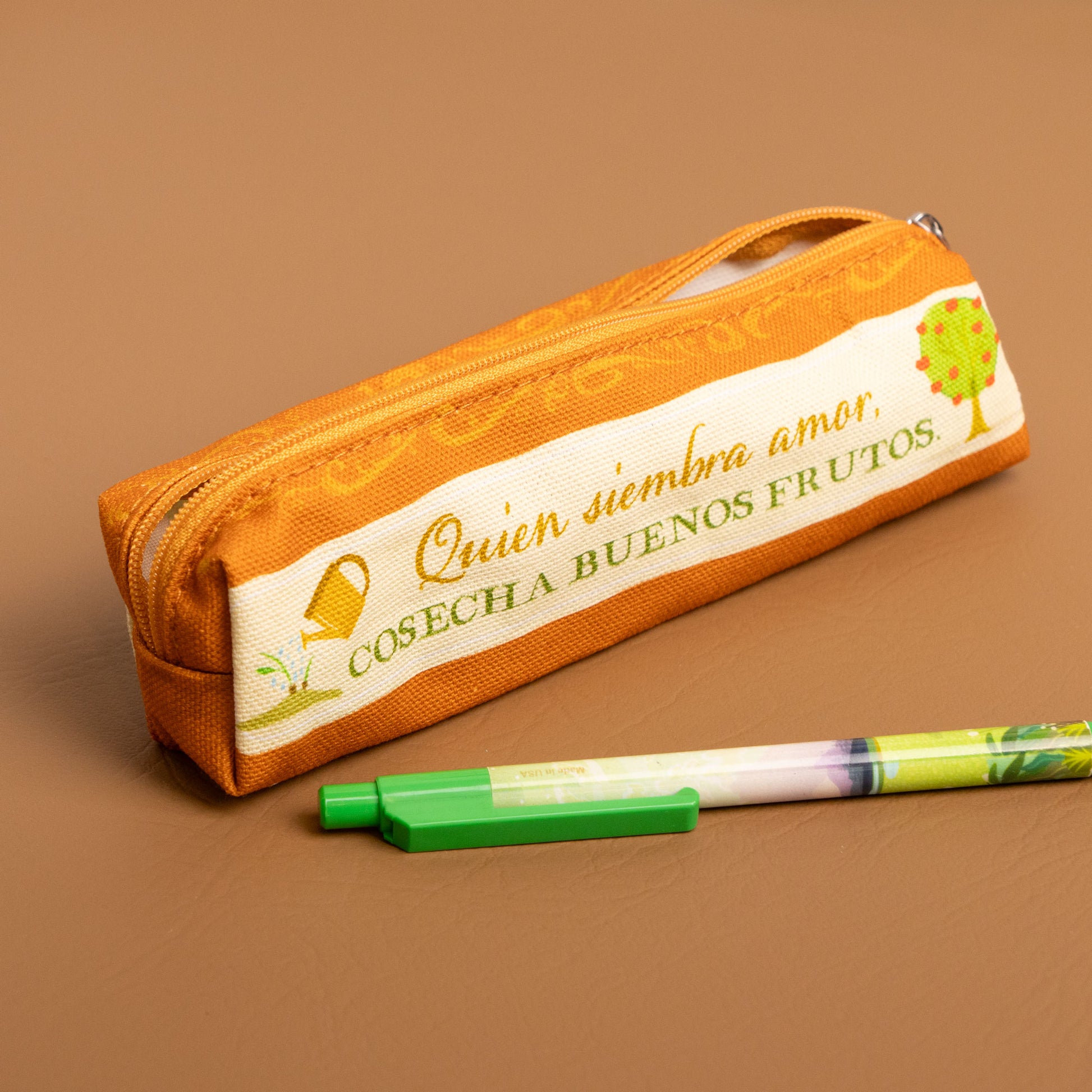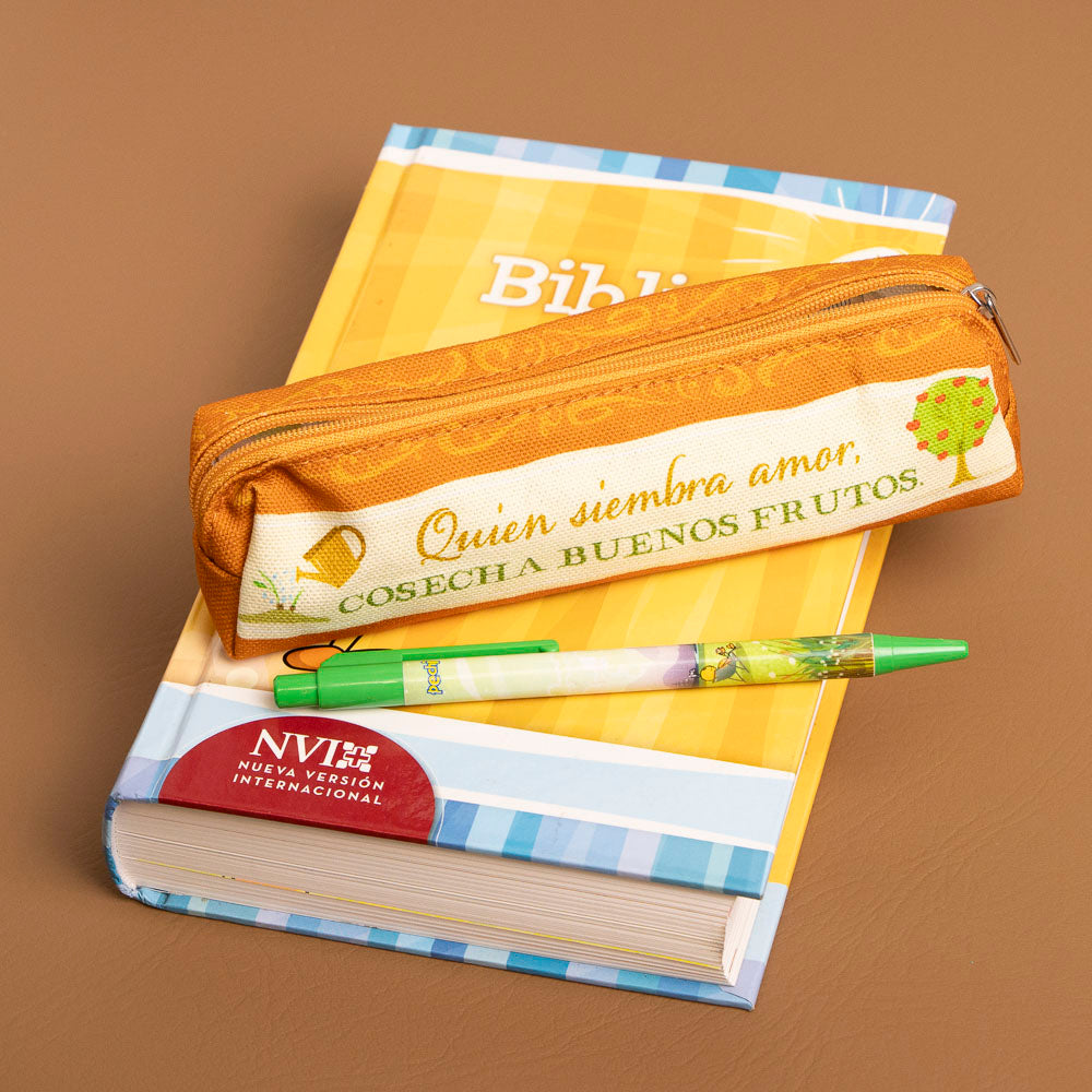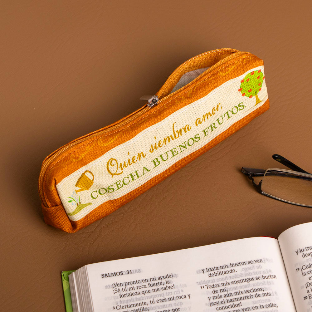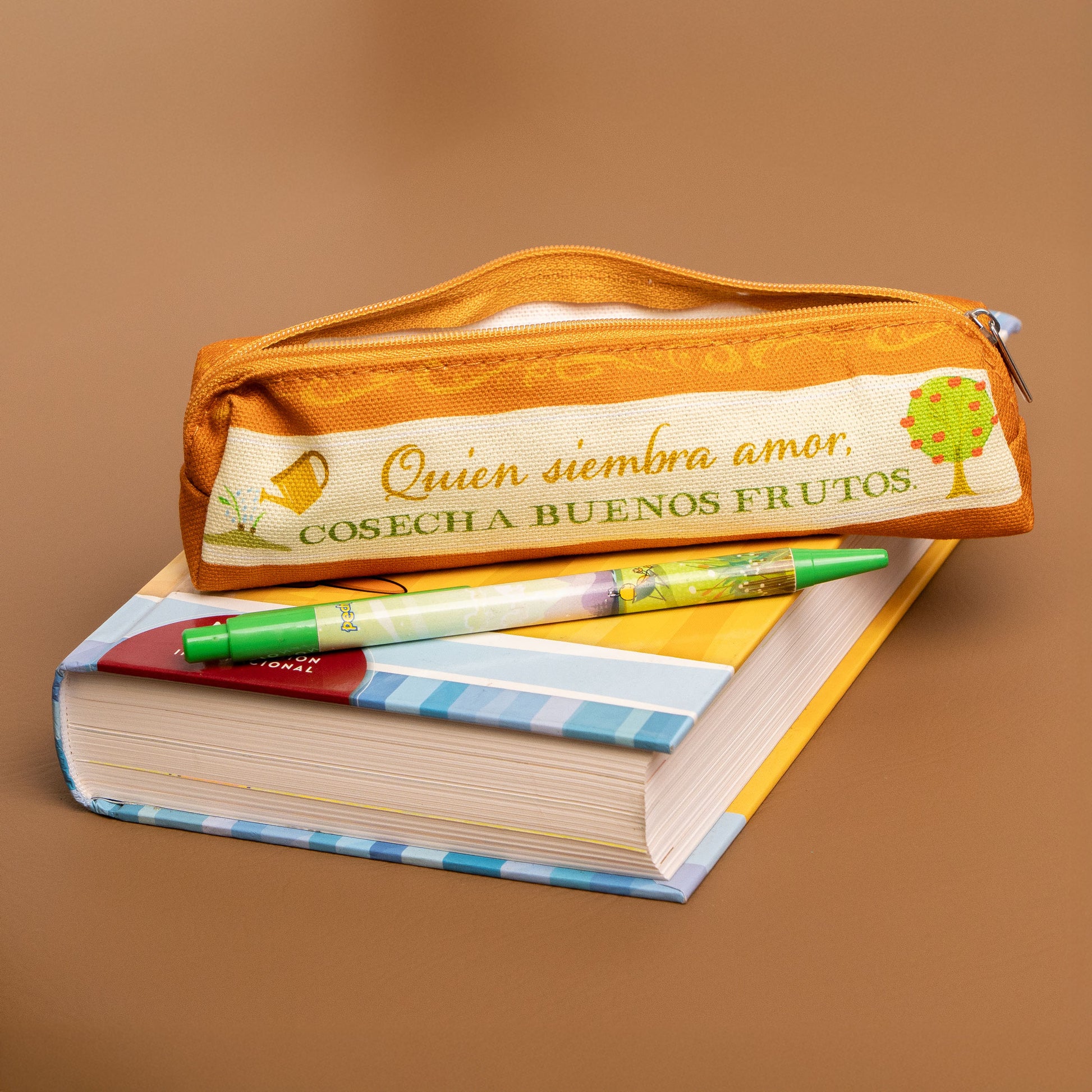 Lleva contigo organización e inspiración con la cartuchera Pechi, hecha en material resistente canva y con un hermoso versículo bíblico. Ideal para lápices y accesorios pequeños, perfecto para tu bolso. ¡Practica, elegante y con un mensaje especial!