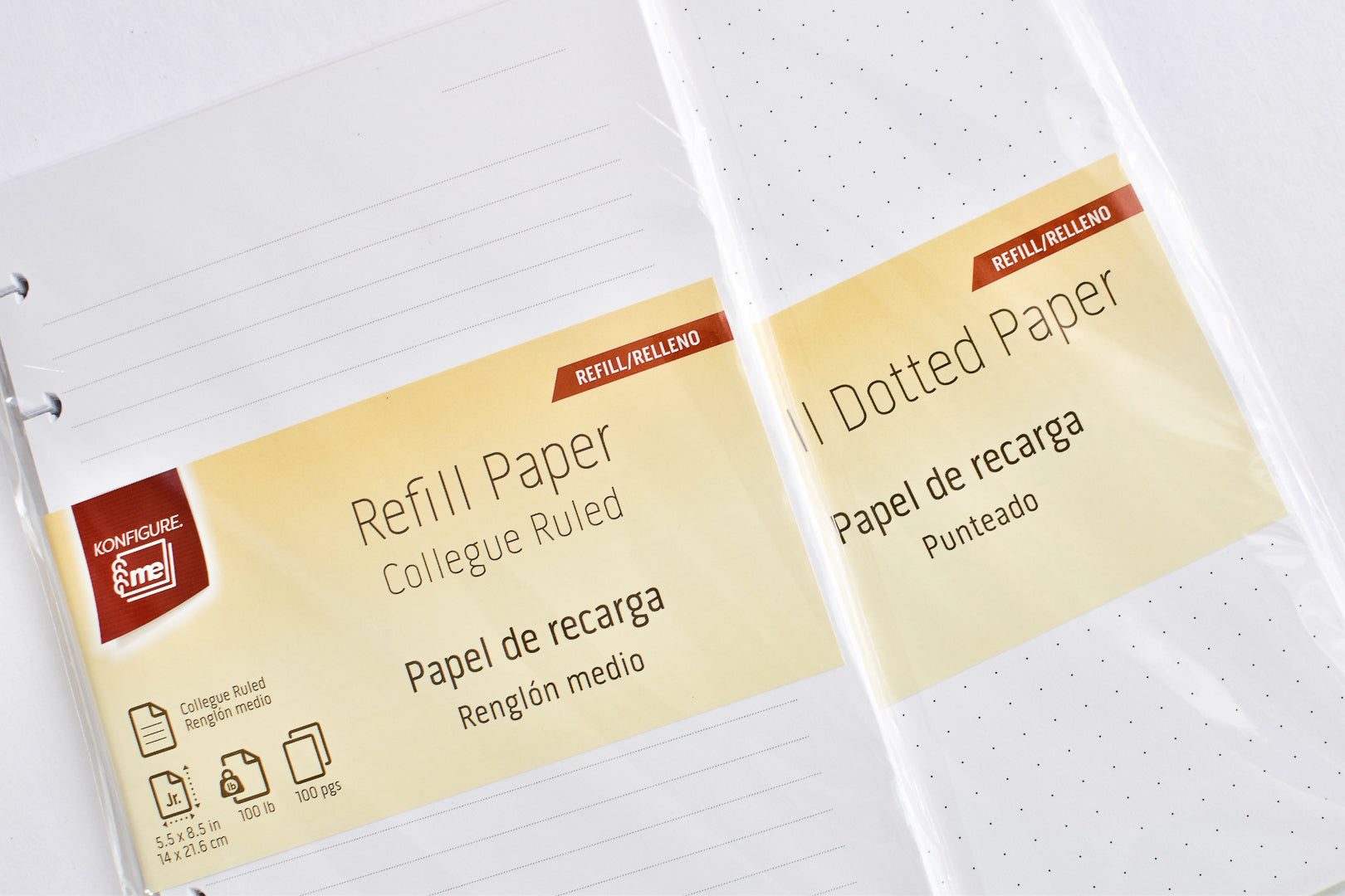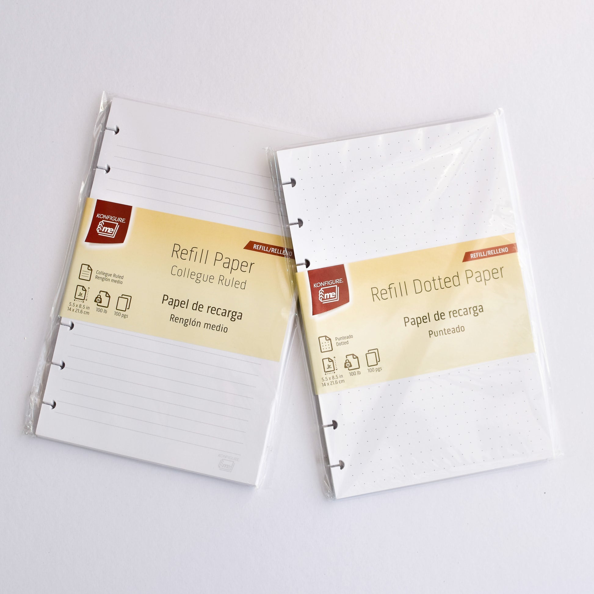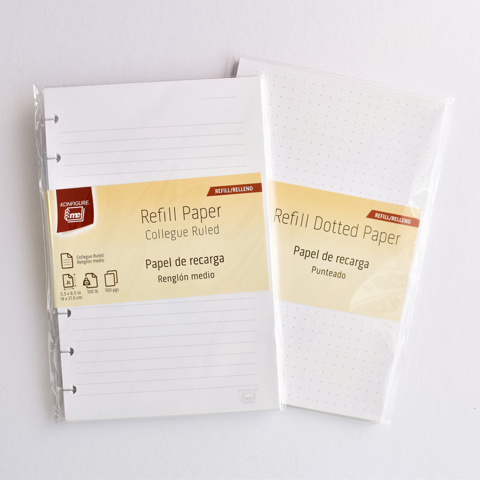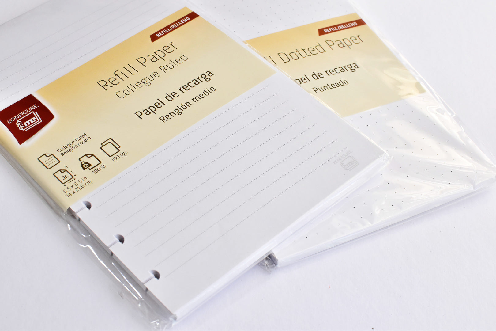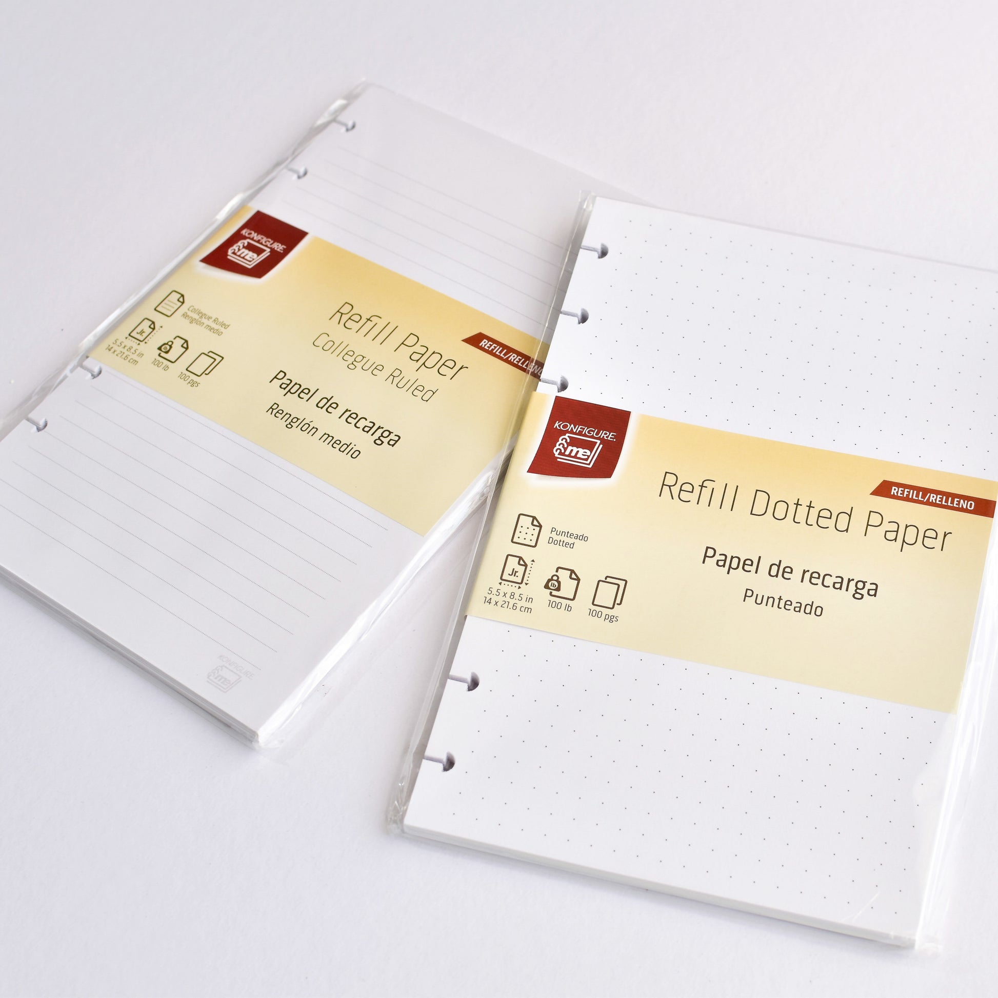 Relleno para tus cuadernos de la marca Konfigure Me o para personalizar tus libretas. Contiene 1 resma de papel de puntos y 1 resma de papel renglón. Descripción: