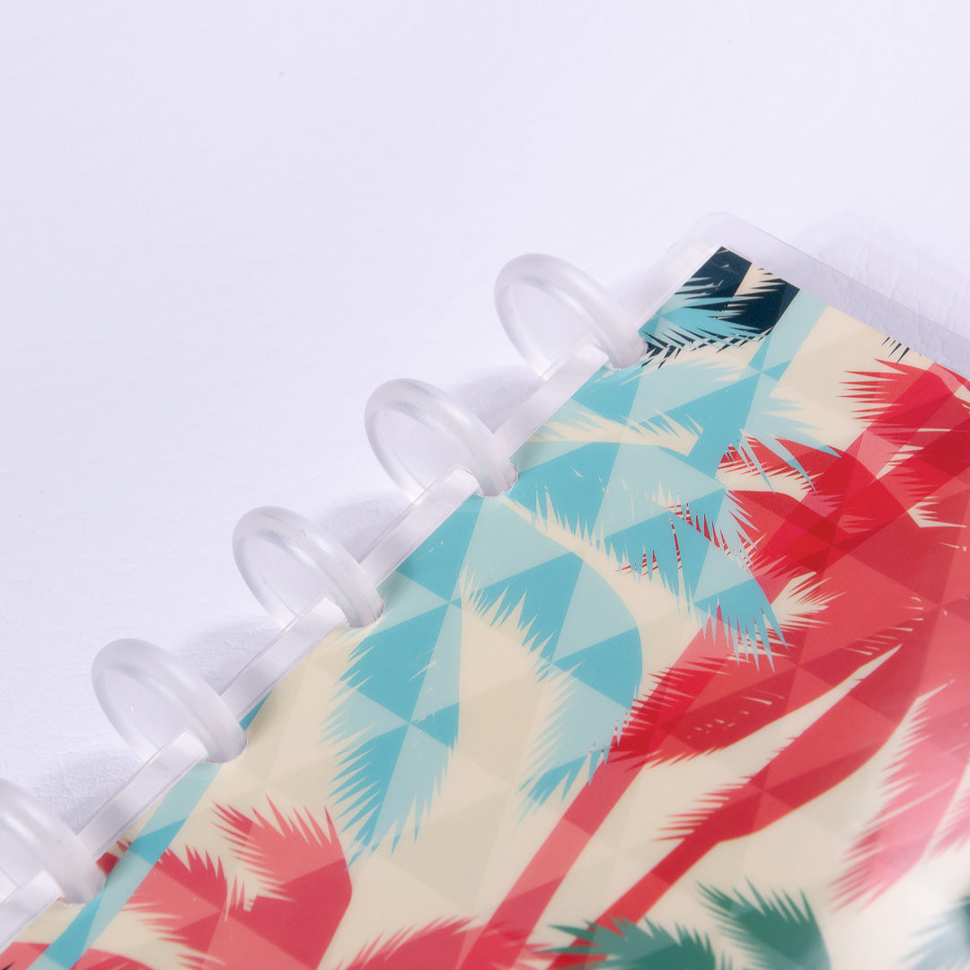 100 pgs, papel 100 lb, Portadas reversibles emplasticadas, tamaño 5.5" x 8.5".