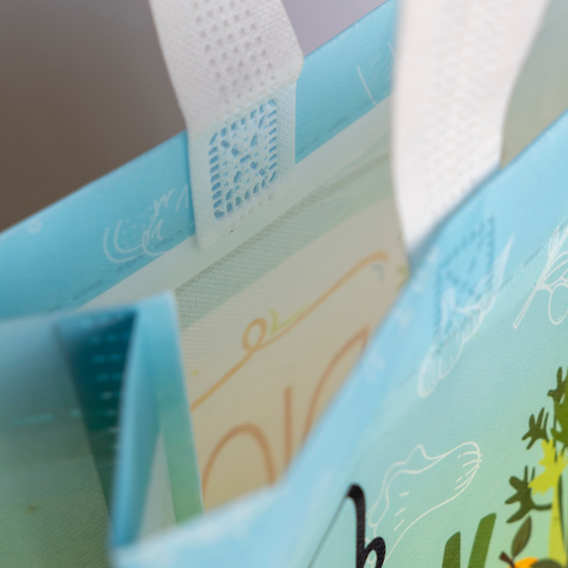 Lleva contigo esta práctica bolsa reutilizable con impresión a todo color en ambas caras. Fabricada en material no tejido, combina resistencia y comodidad en un diseño de 30 x 38 x 10 cm.