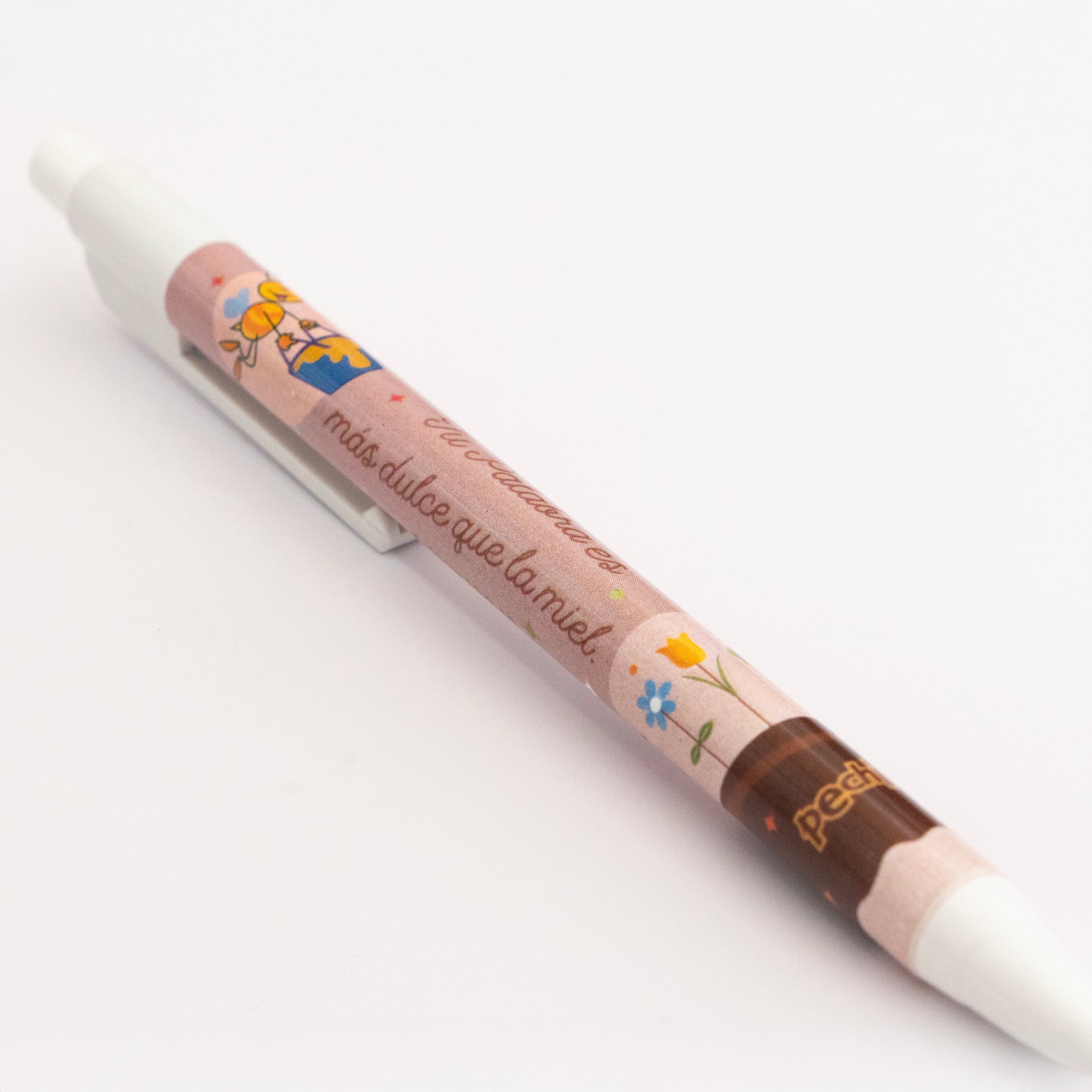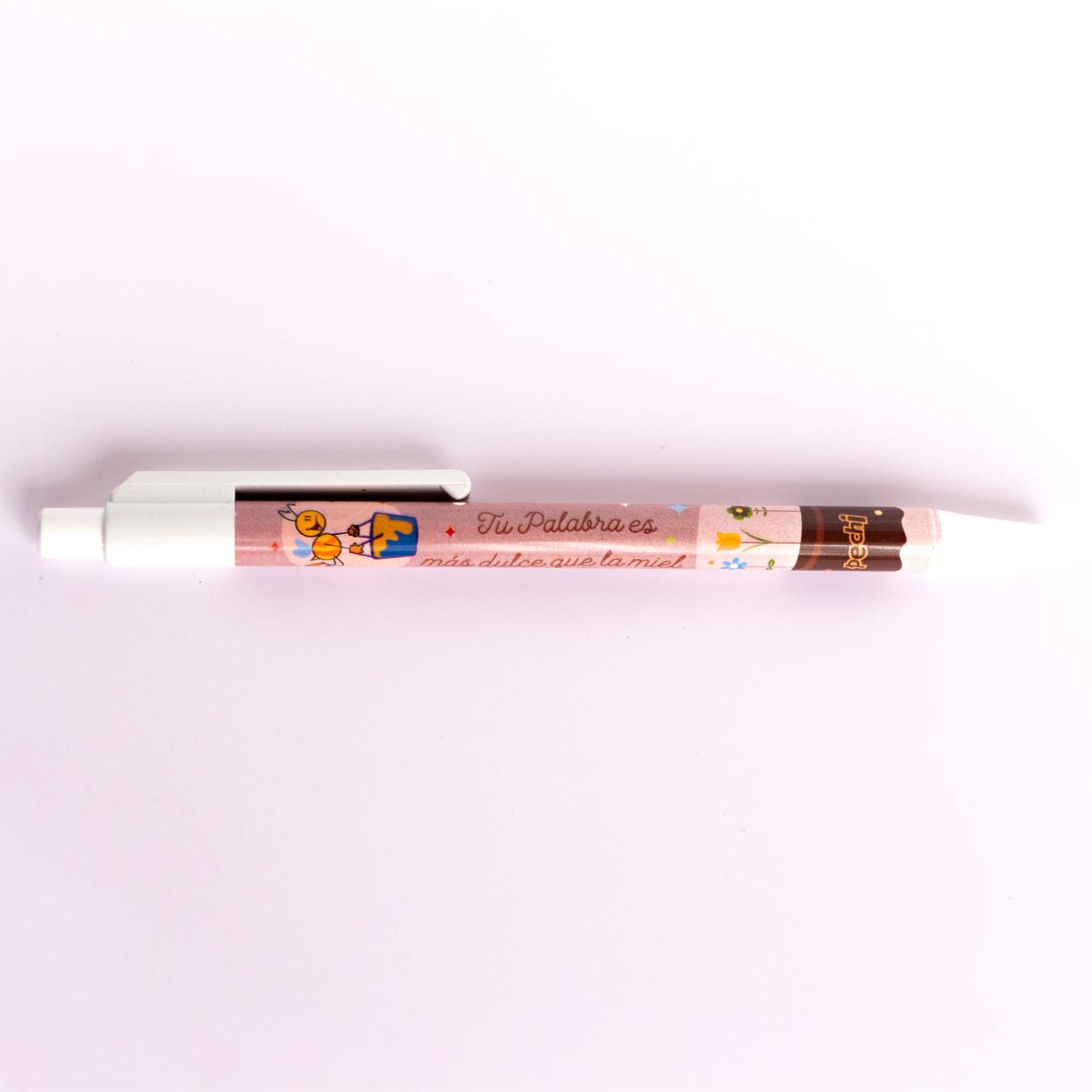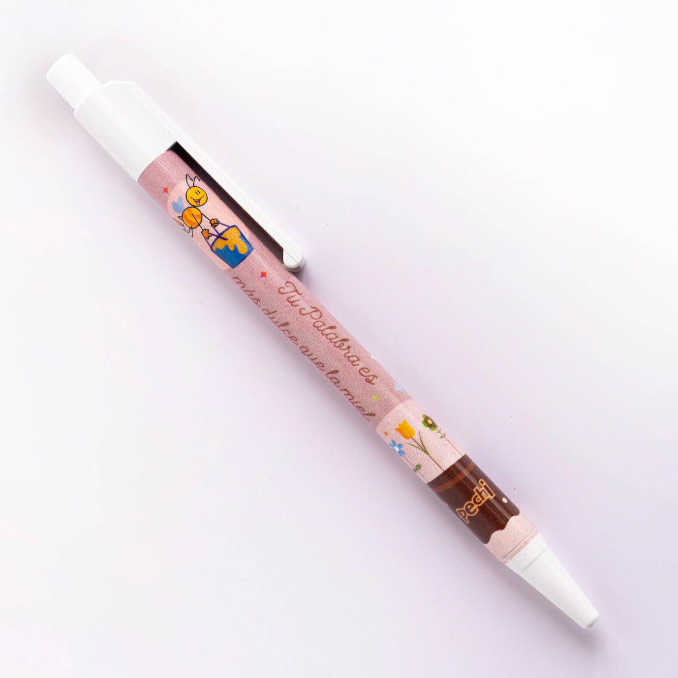 Hermoso lapicero con diseño de Pechi palabra miel, endulza tus días y tu agenda, cuaderno o donde apuntes con la bendición de usar un lapicero lleno de esperanza.