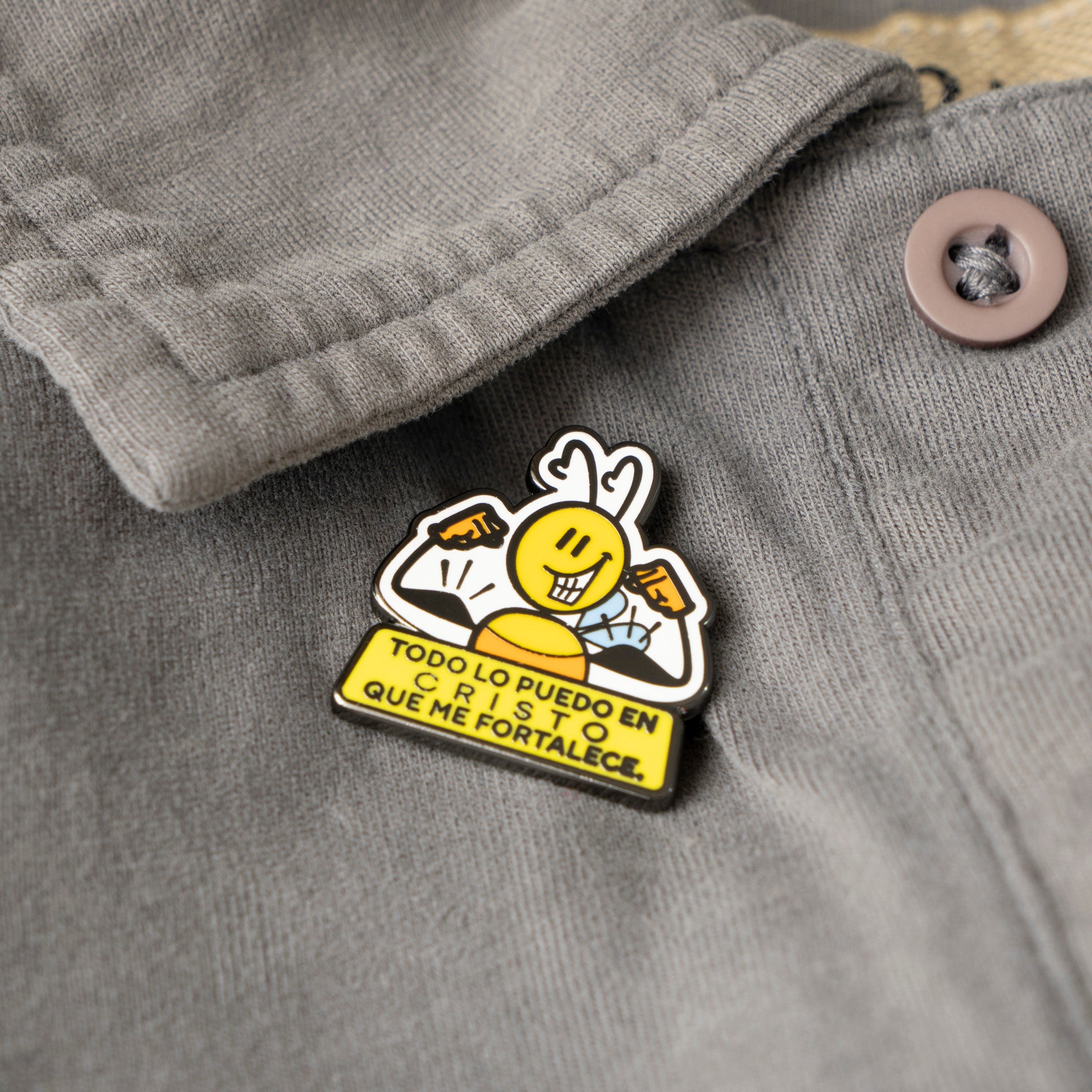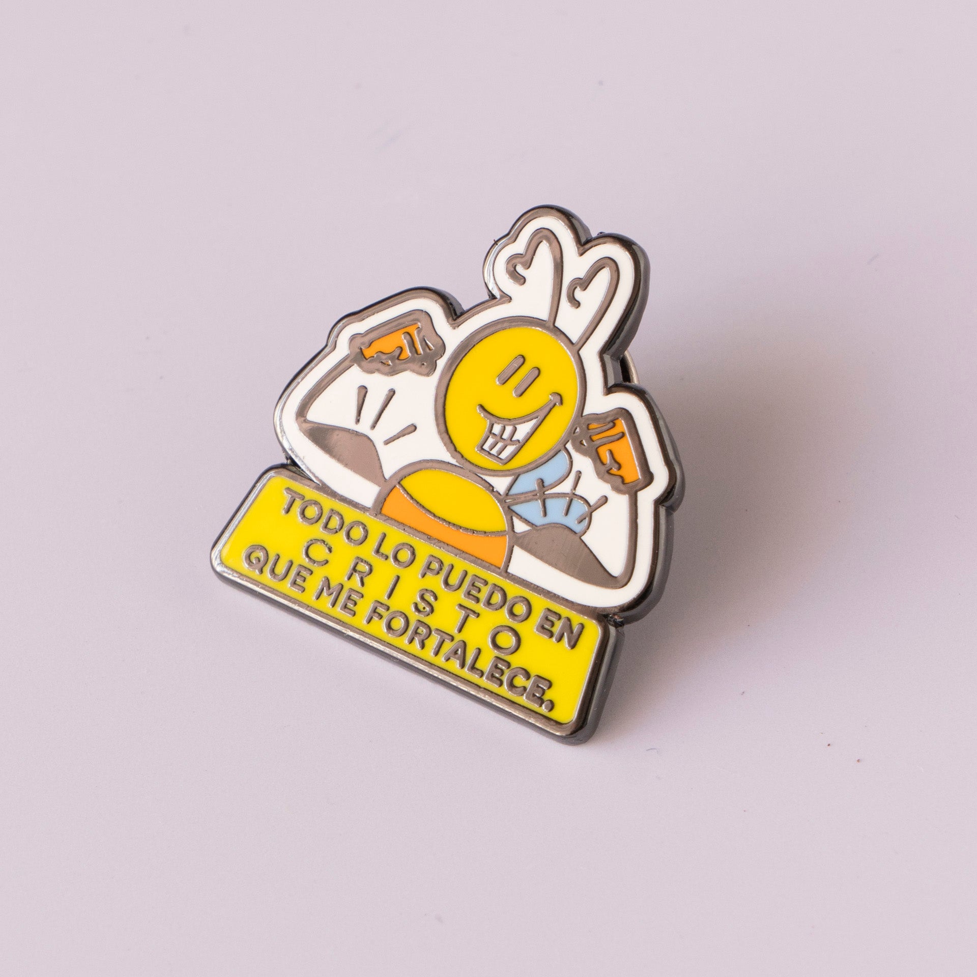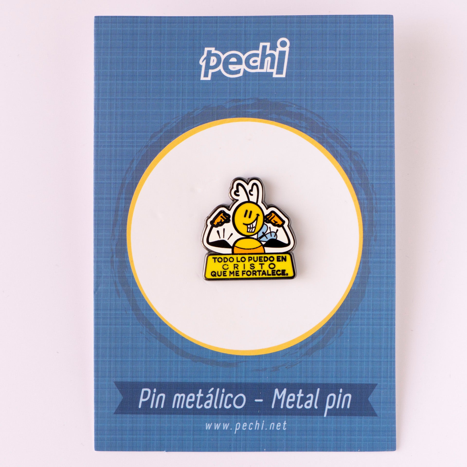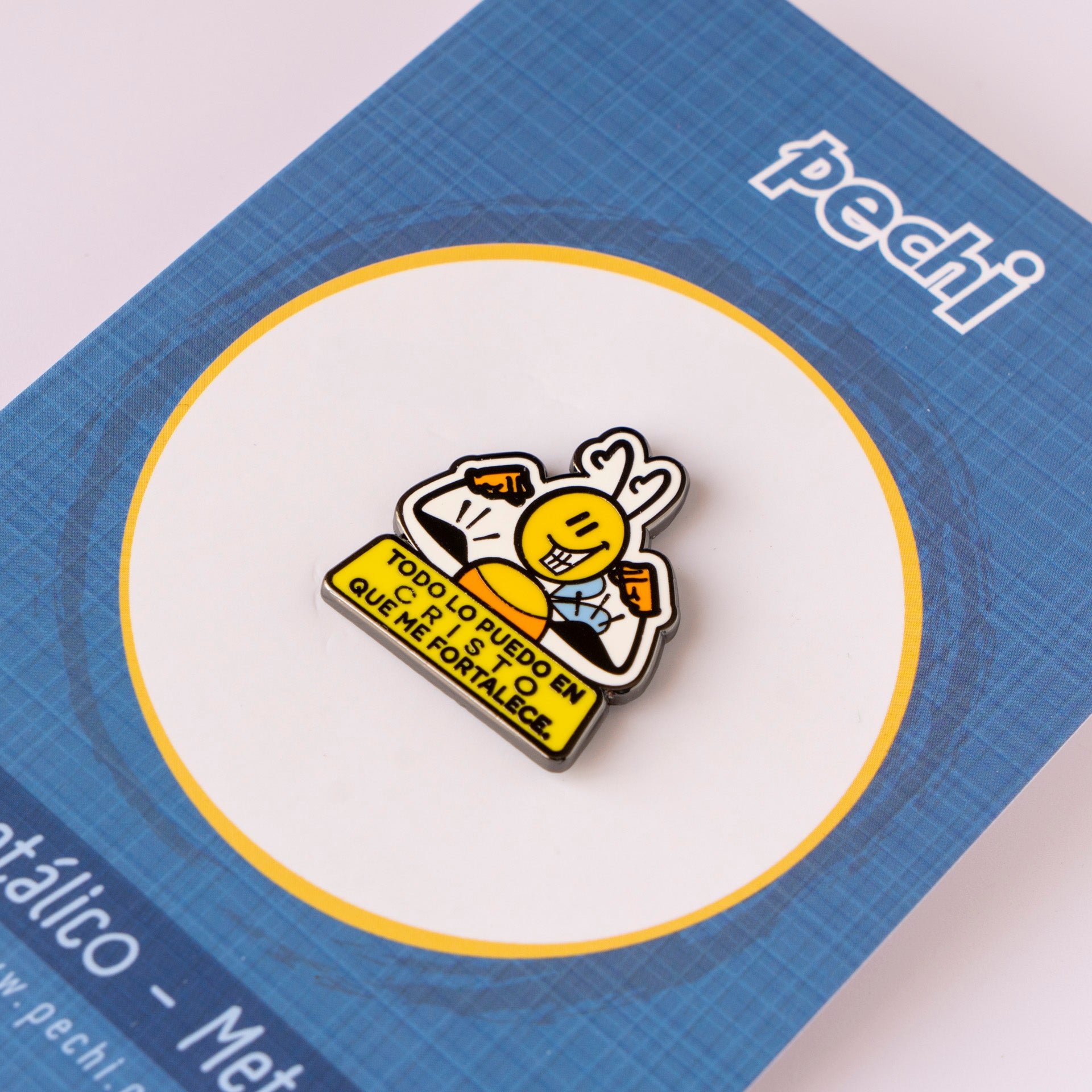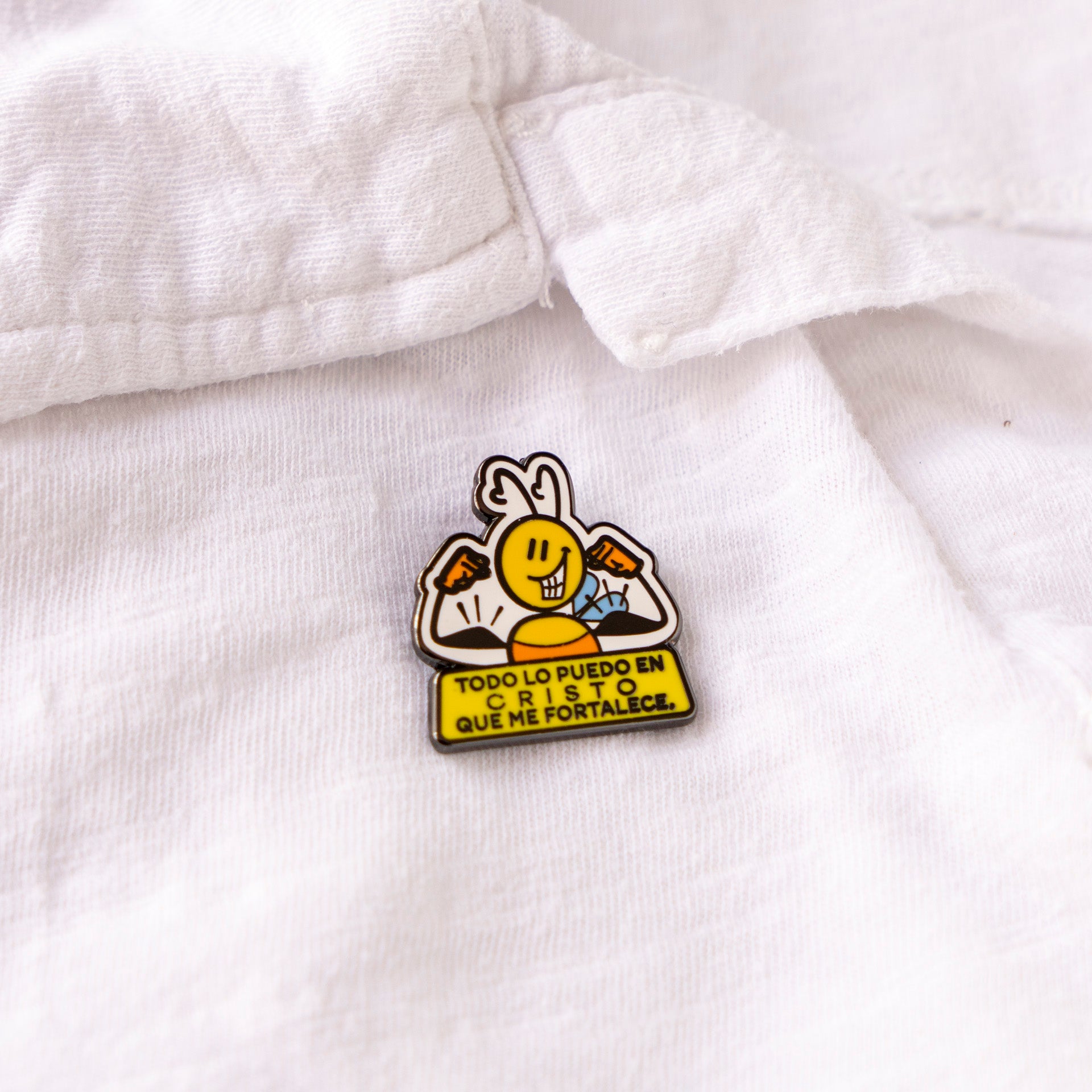 ✨✨ ¡Lleva tu fe contigo siempre! ✨ Pin Metálico con el versículo bíblico: "Todo lo puedo en Cristo que me fortalece" (Filipenses 4:13). 🌟