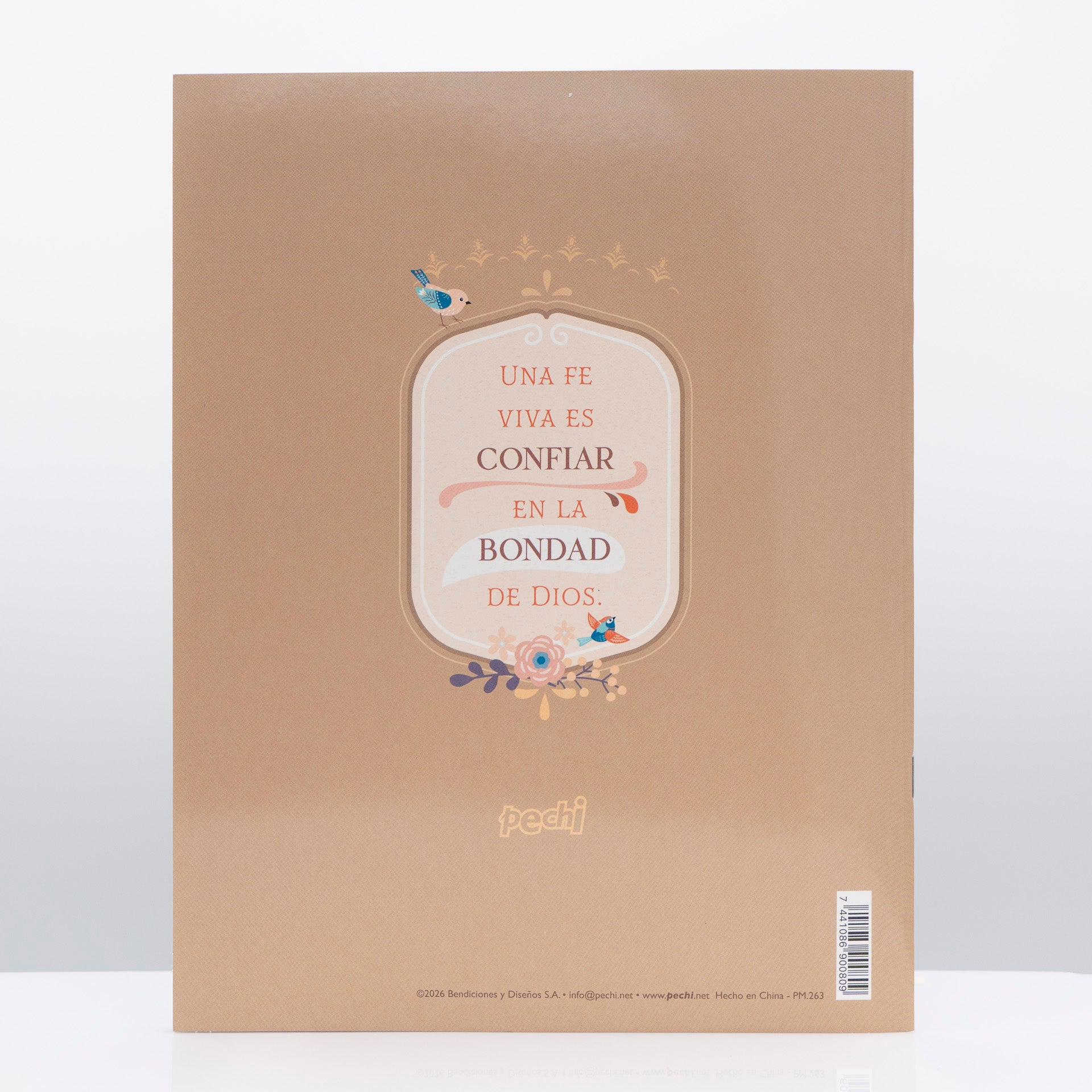 Con una portada suave y delicada, llena de pajaritos, flores y ternura, este planificador te recuerda que no estás sola. Dios cuida de ti con amor perfecto cada día.