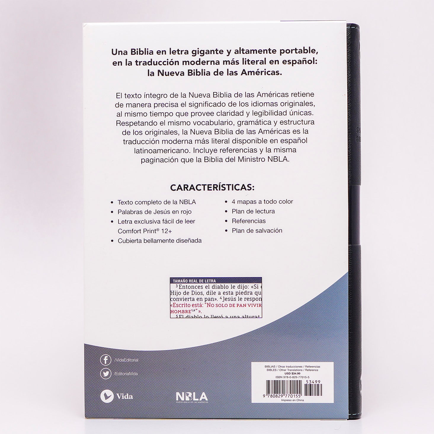 El texto íntegro de la Nueva Biblia de las Américas retiene de manera muy precisa el significado de los idiomas originales, al mismo tiempo que provee claridad y legibilidad únicas. Respetando el mismo vocabulario, la gramática y la estructura de los originales, la Nueva Biblia de las Américas es la traducción moderna más literal disponible en español latinoamericano.