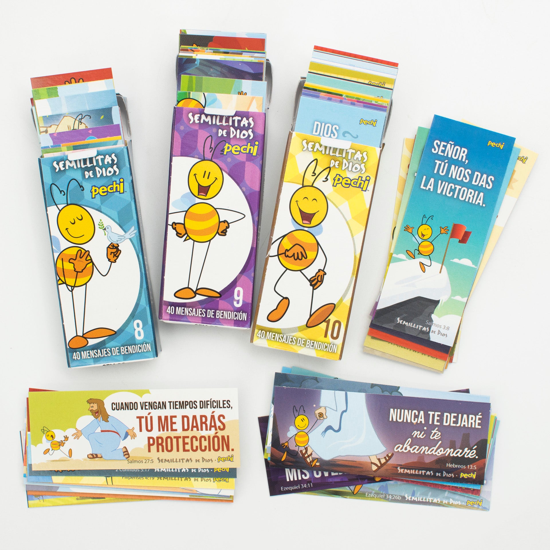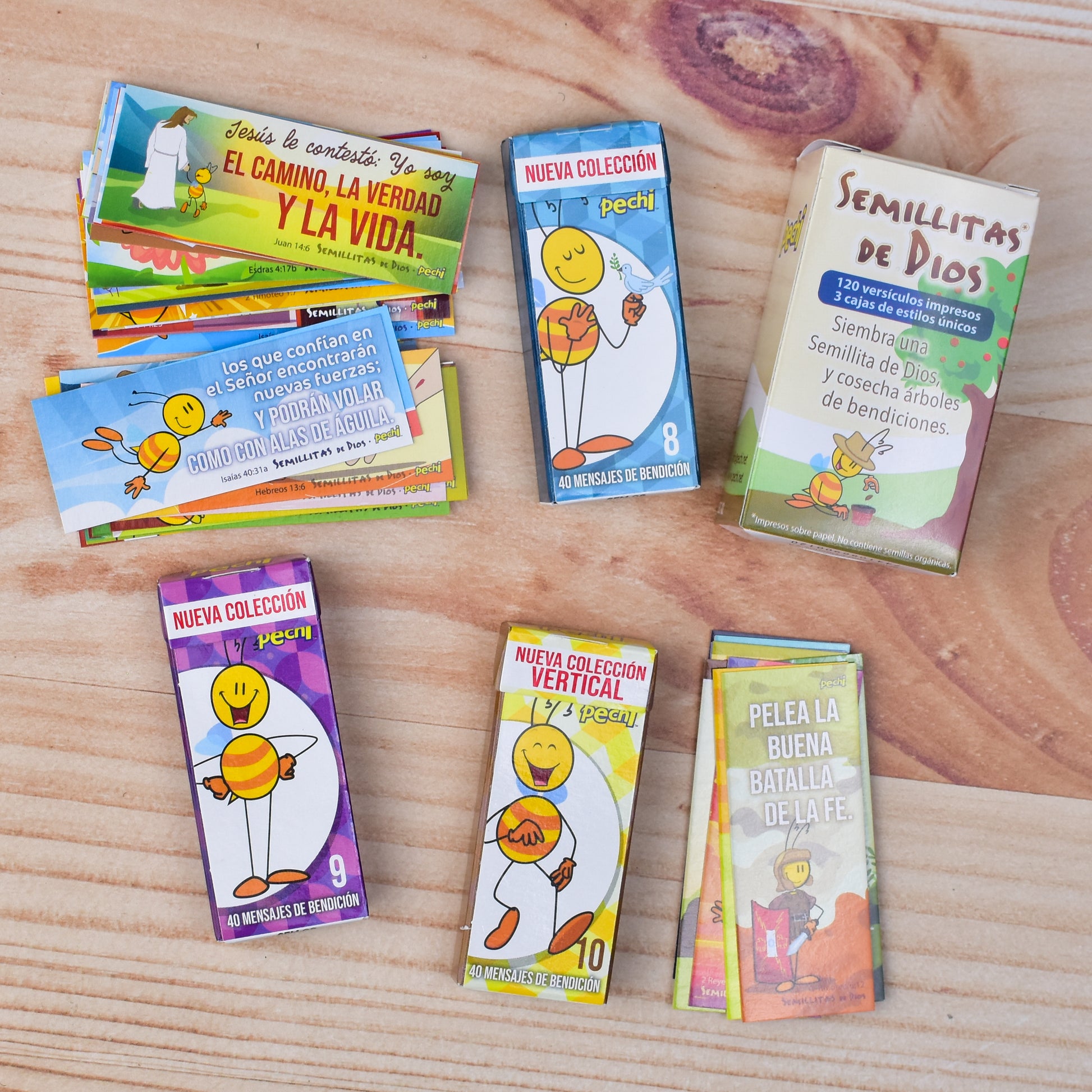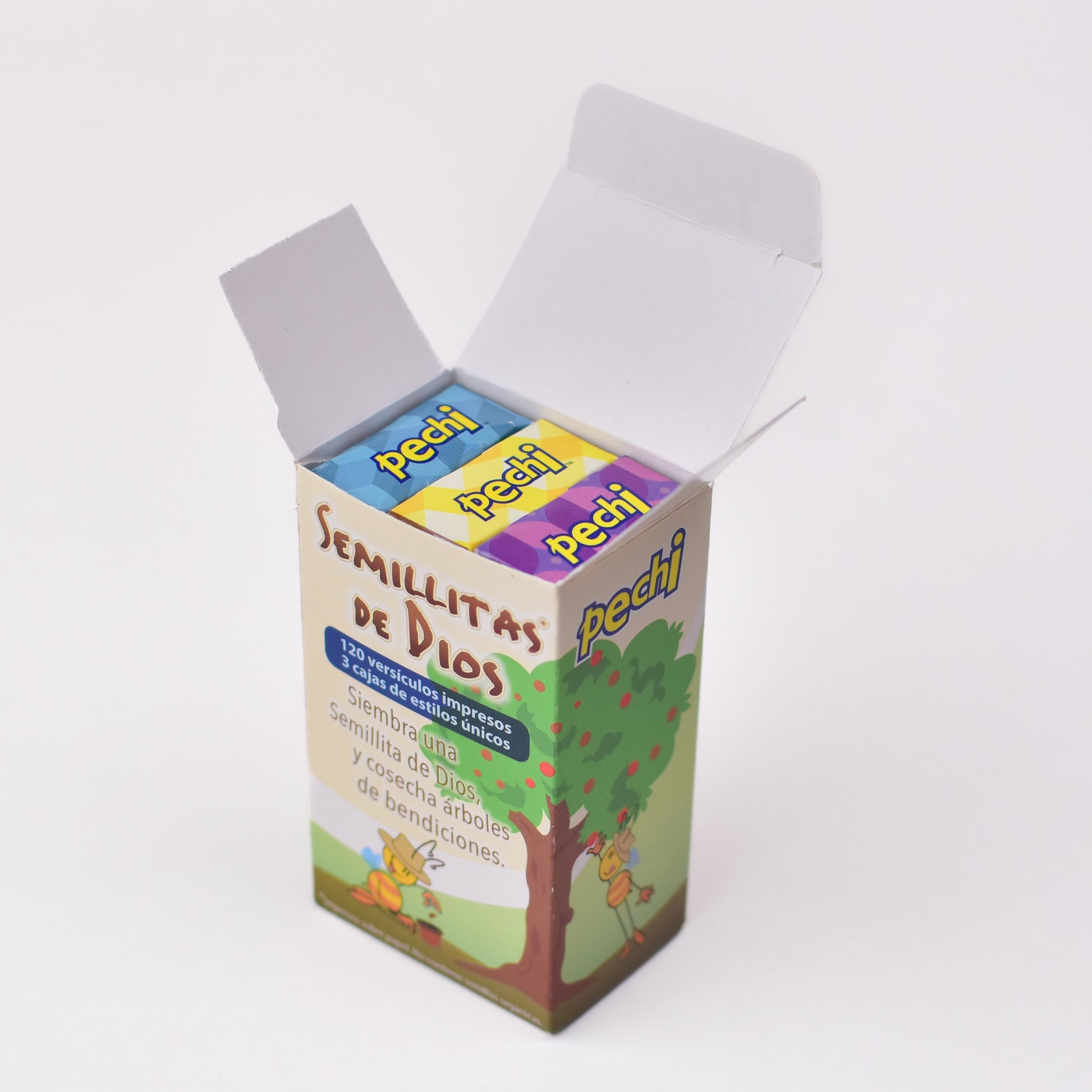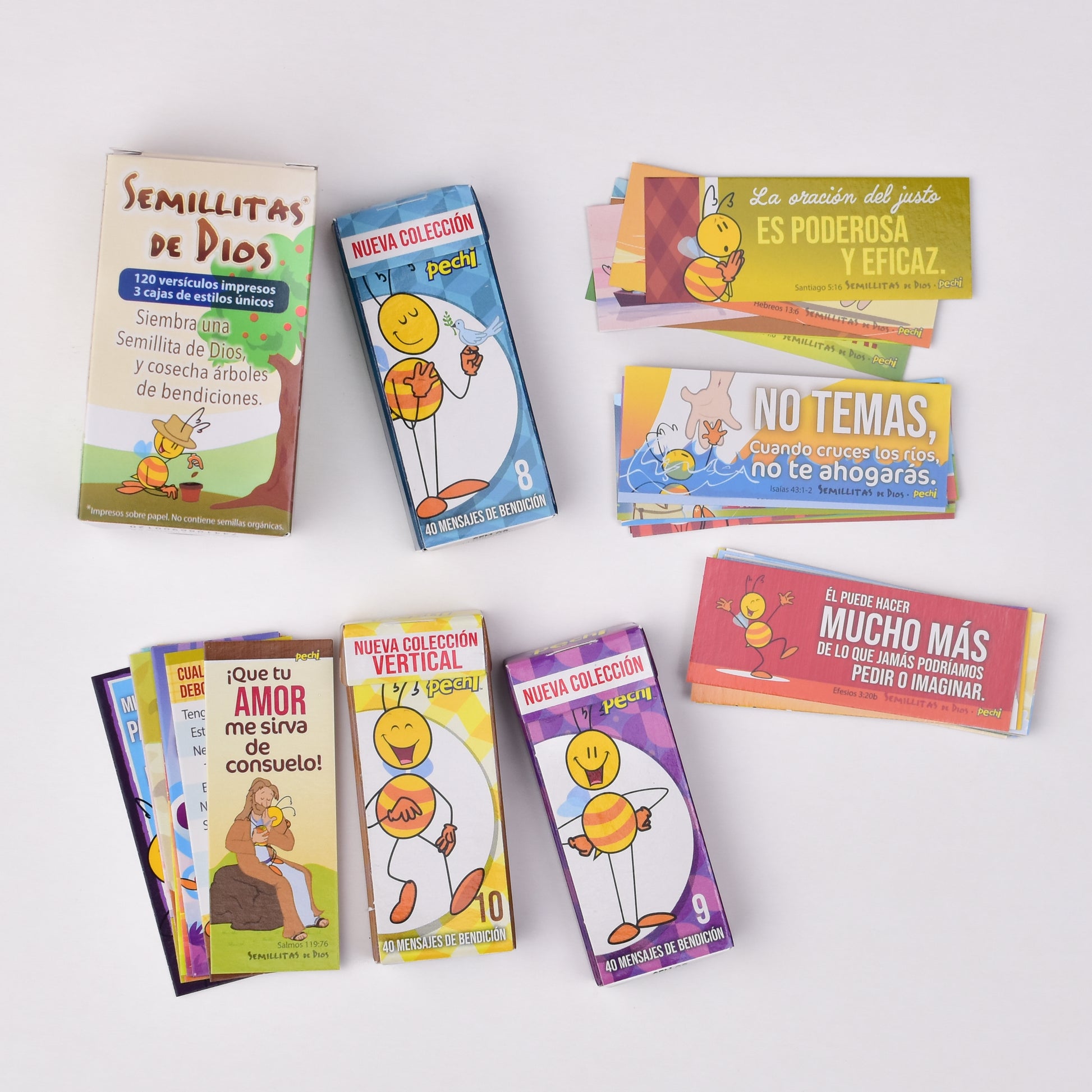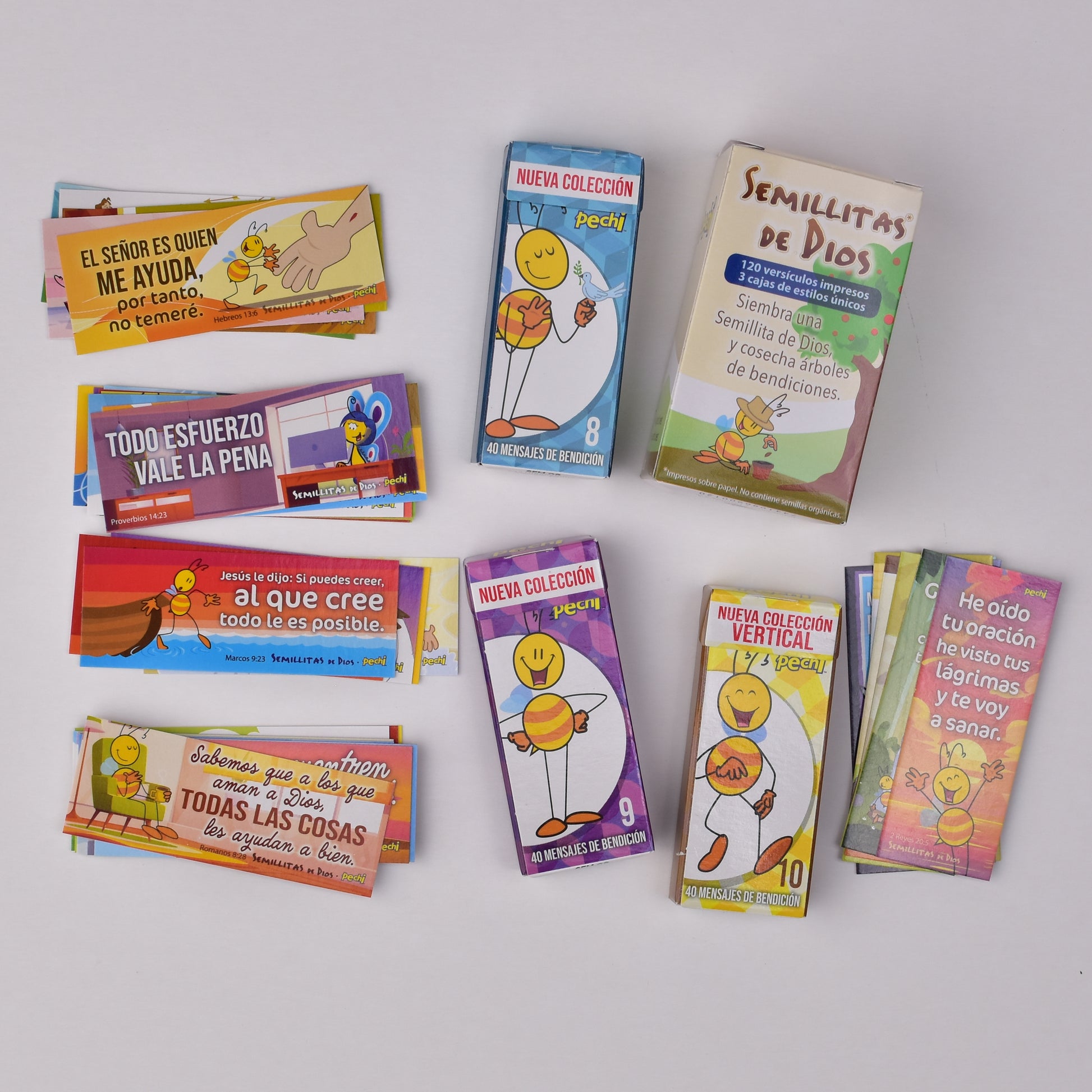 Combo semillitas de Dios tradicionales, renovadas y con nuevo diseño vertical su empaque. Incluye las cajitas: 8, 9 y 10.