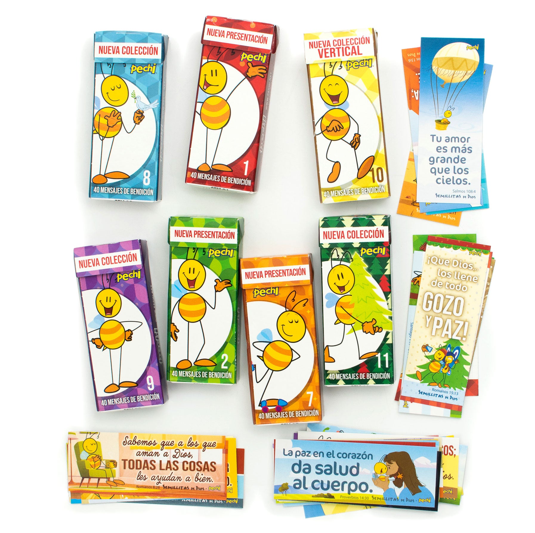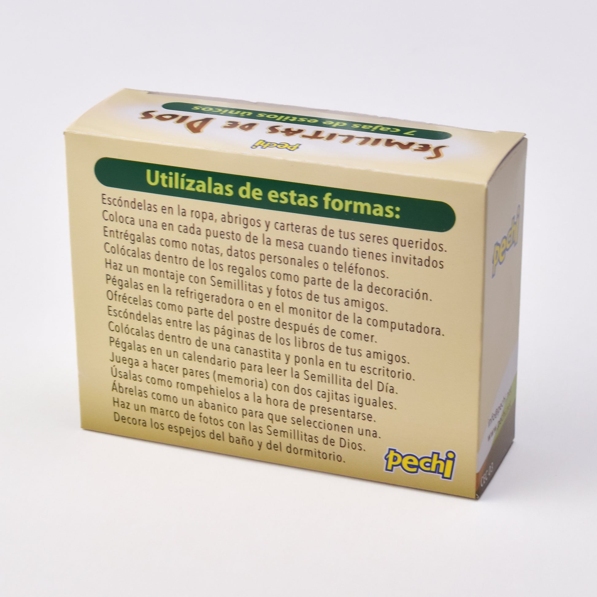 Colección completa de semillitas de Dios tradicionales, renovadas y con nuevo diseño vertical su empaque. Incluye las cajitas: 1,2,7,8,9,10 y 11 navideña.